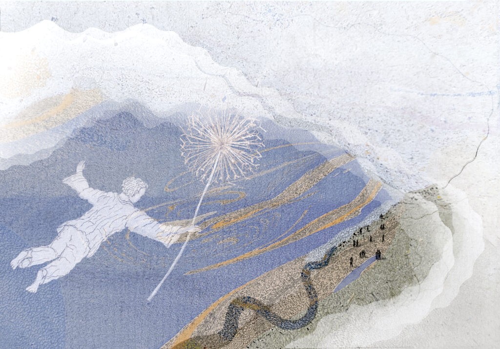 Daugumoje atvartų tekstas kuria labai skirtingą nuotaiką. Tai spalviniai atvartų sprendimai irgi labai keitėsi. Bandžiau juos suvienyti fonais: kai kur labiau pasisekė, kai kur ne visai. Viena sunkiausių buvo paskutinė scena. Daug diskutavome su Milda ir Kazimieru, kaip „šviesiai“ perteikti iš šio pasaulio išeinantį Kastuką. Eskizų buvo nemažai. Pradžioje skrido Konstantinas ant paukščio. Paukštis nuo gimimo tartum buvo jo palydovas ir jis atsiranda daugelyje piešinių, bet atrodė banaliai, tai atsisakiau.