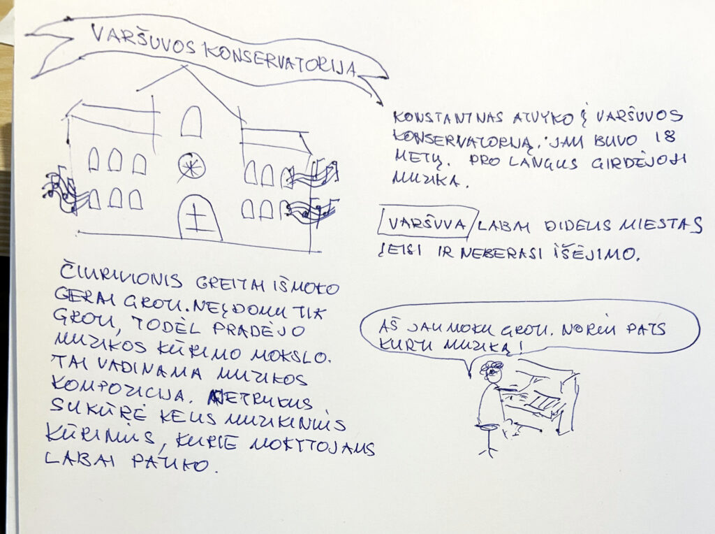 Vesdama edukacijas vaikams jau puikiai žinojau visą biografiją, domėjausi tekstais tiek apie Čiurlionio muziką, tiek ir apie dailę. Žinojau ir ne vieną Konstantino vaikystės nuotykį.