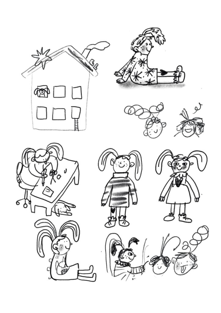 Įdomiausia, kad šiai knygai eskizų beveik nedariau. Kaip minėjau, viskas buvo galvoje, tai tiesiog atsisėsdavau ir piešdavau. Kūrybinių strigimų taip pat kaip ir nebuvo, jie labiau susiję su kelionėmis ir nuovargiu, o ne su kūrybiniu procesu. Dirbti su Šarūne buvo nerealu – aš jai nusiųsdavau eskizus, ir viskas tikdavo, o pataisymų, jei buvo, tai vos keli, labai maži. Pamenu, nupaišiau paskutiniame atvarte miegančius žiurkėnus namuke ir prieš siųsdama Šarūnei sugalvojau jų batukus gražiai išrikiuotus nupiešt. Maniau, jai tikrai patiks. Ir iškart gavau atsakymą: batukai tokie puikūs, kad net kvatojosi!